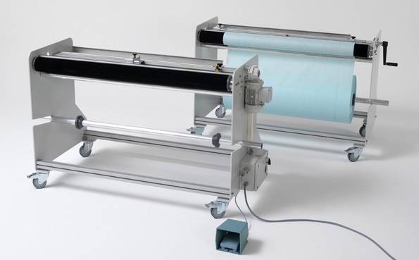 Unsere motorisierte Waschtuchwickelvorrichtung rollt Waschwickel aus 500-Meter-Rollen auf Saubertuchspindeln von Gummituchwaschanlagen für Sie um – dauerhaft, unkompliziert, zeit- und kostensparend!